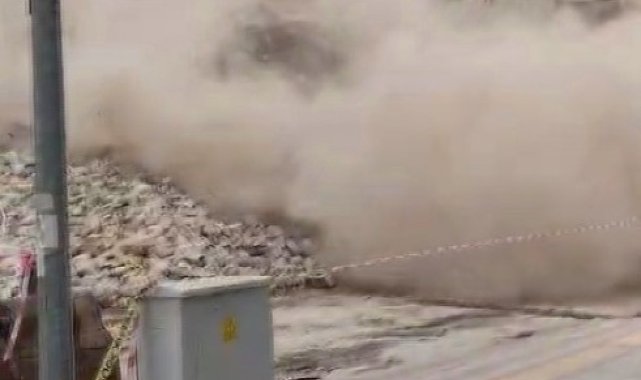 Hatay'ın Defne ilçesinde ağır hasarlı olan 5 katlı bina, mahkeme sürecinin tamamlanmasının ardından, iş makinesinin darbesiyle yerle bir oldu.Kahramanmaraş merkezli depremlerde ağır hasar alan Hatay'da mahkeme süreci sona eren binaların yıkım ve enkaz kaldırma çalışmaları aralıksız sürüyor. Defne ilçesi Turunçlu Mahallesi'nde bulunan 5 katlı bina, iş makinesinin darbeleriyle kontrollü olarak yıkıldı. 5 katlı binanın yıkımı esnasında herhangi bir olumsuzluk yaşanmadı. Binanın yıkımı cep telefonu kamerasıyla kaydedildi."Depremden bayağı hasar almıştı ve iş makinesinin yardımıyla 5 katlı bina yıkıldı"Depremden dolayı ağır hasarlı olan 5 katlı binanın yıkıldığını ifade eden mahalle sakini Belgin Aygün, "Turunçlu Mahallesi'nde bulunan 5 katlı bina yıkıldı. Depremden bayağı hasar almıştı. İş makinesinin yardımıyla 5 katlı bina yıkıldı. Yıkımdan dolayı toz oldu ama Allah'tan yağışlı hava olduğu için tozu kapattı. Binanın yıkılma anında oluşan sarsıntı bizi korkutuyor" ifadelerini kullandı.