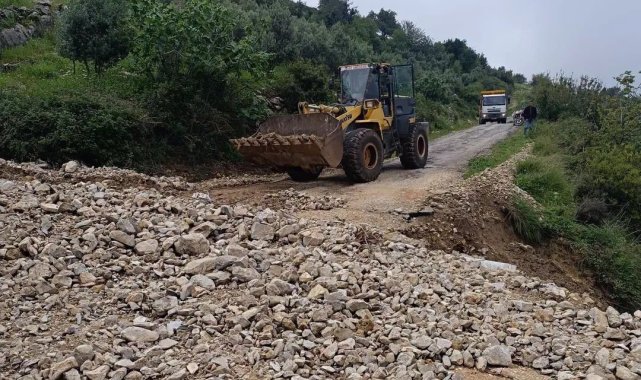Hatay'da etkili olan yoğun yağışla birlikte yaşanan heyelan mahalleler arası ulaşımı sağlayan yolu ulaşıma kapattı.
