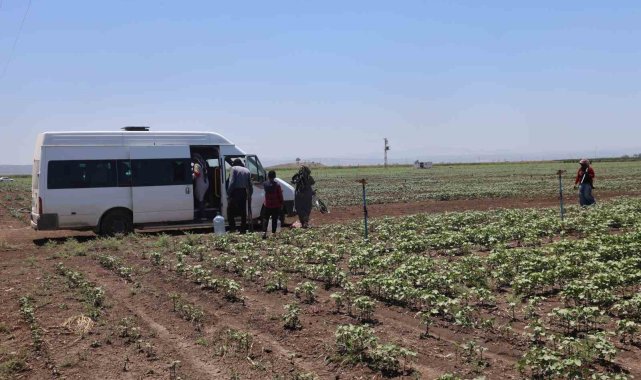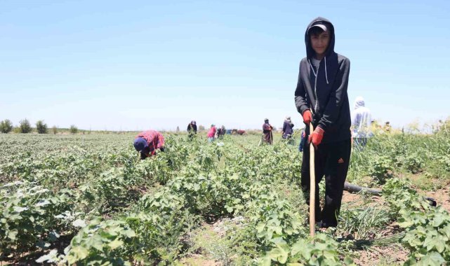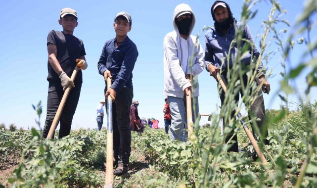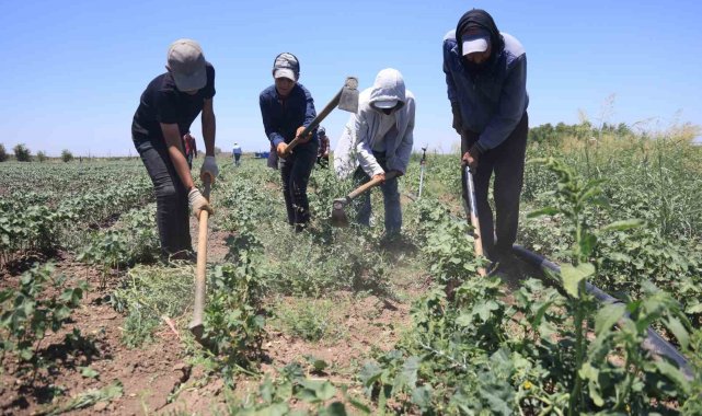 Termometrelerin 40 dereceye aştığı Hatay'da pamuk tarlasında çalışan tarım işçileri 650 TL yevmiyeyle zorlu mesaiyi sürdürüyor.Hava sıcaklıklarının artmasıyla Hatay'da termometreler 40 dereceyi aştı. Kavurucu sıcak en çok tarım arazilerinde zorlu şartlarda çalışan tarım işçilerini etkiliyor. Reyhanlı ilçesi Beşaslan Mahallesi'ndeki 150 dönümlük pamuk tarlasında yabani otları temizleyen tarım işçileri, 650 TL yevmiyeyle zorlu mesaiyi sürdürüyorlar. Kavurucu sıcaklılara rağmen zorlu şartlarda mesai yapan tarım işçileri, sıcaklığın yüksek olduğu günlerde yarım gün mesai yaparak çalışıyor."725 TL yevmiyenin 75 TL'sini çavuş alıyor ve işçinin eline kalan temiz para 650 TL"Tarlada çalışan tarım işçilerinin yevmiyelerinin 650 TL'ye geldiğini söyleyen çavuş Süleyman Dolgun, "Burası 150 dönüm pamuk tarlası, şu an biz pamuk tarlasında kazma işi yapıyoruz. Pamuk tarlasında istenmeyen otları alıyoruz. Gördüğünüz gibi 40 derece ve 38 derece sıcaklıkta çalışıyoruz. Biz Ziraat Odası'nın kestiği fiyat üzerinden yevmiye alıyoruz. Ziraat Odası'nın kestiği yevmiye 725 TL'nin 75 TL'sini çavuş alıyor. İşçinin eline kalan temiz para 650 TL'dir. Geçen çavuşlar arasında bir anlaşmazlık oldu. Kesinlikle ne 800 TL ne de 1000 TL alıyoruz. Aldığımız yevmiye 650 TL'dir" dedi."44 derece sıcakta mecburen yarım yevmiye çalışıyoruz, işçiler sıcağı sevmiyor"Sıcak havalarda açık alandaki tarım arazisinde çalışmanın zor olduğunu söyleyen Dolgun, "Sıcak ama biz de bunun için sabah 04.00'te işçileri toplamaya başlıyoruz. Tarlaya yetişene kadar 5'te iş başı yapıyoruz. Öğlen yemeğine oturmuyoruz. Hava sıcak olduğu için saat 12.30'ta paydos yapıyoruz sıcağa kalmamak için. Yabani otlar olursa pamuk yetişmez. Bu otları bırakırsak pamuktan daha yüksek olur ve verimi düşer. Hayat şartları biraz zor ve yevmiyeler de aslında yetersiz. Yine de mecbur çalışıyoruz yani ne yapalım. Ben 5 yıldır bu işi yapıyorum, Sıcaklıklara alıştım. İşçi de alıştı. Bazen işte böyle hava çok sıcak oluyor. Mesela 42 derece veya 44 dereceyi gördük. 44 dereceyi gördüğümüz günler mecburen yarım yevmiye çalışıyoruz. İşçiler sıcağı sevmiyor, genelde ağaç işlerini tercih ediyor ama sürekli ağaç işi de olmaz" ifadelerini kullandı.