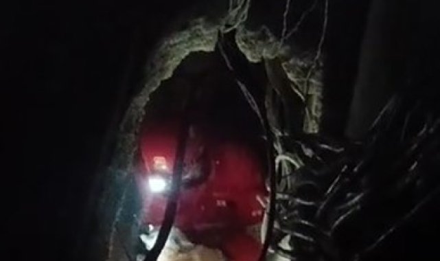 Hatay'ın Dörtyol ilçesinde havalandırma boşluğuna düşen kedinin itfaiye ekipleri tarafından kurtarıldığı anlar kameraya yansıdı.