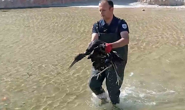 Havuza düşen yaralı leylek koruma altına alındı