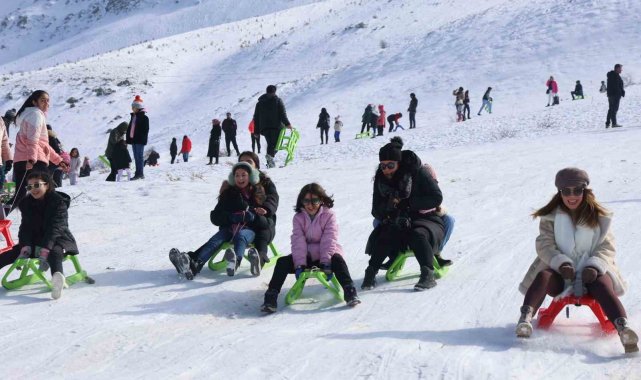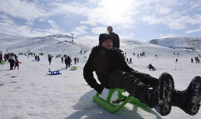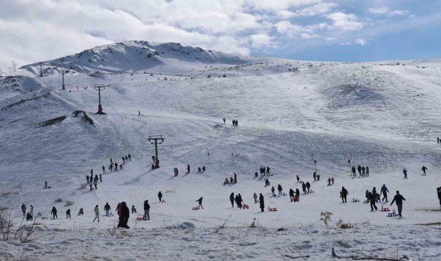 Elazığ'ın Hazar Baba Kayak Merkezi, beklenen kar yağışı olmamasına rağmen sömestirde yoğun ilgi görüyor. Kızak gibi alternatif aktivitelerle tatilciler keyifli vakit geçirirken, eşsiz Hazar Gölü manzarası bölgeye olan ilgiyi artırıyor.