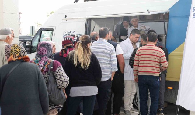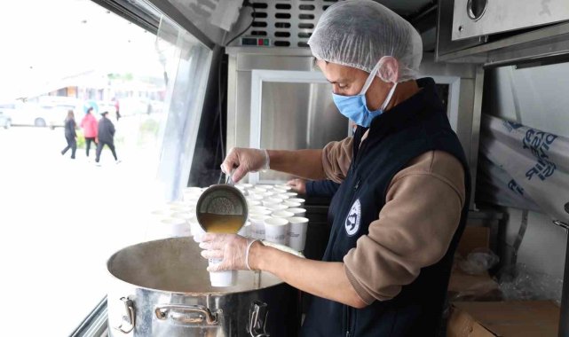 Hatay Büyükşehir Belediyesi (HBB), hastane önlerinde hizmet veren mobil yemek tırlarıyla vatandaşlara sıcak çorba ikramında bulunarak gönülleri ısıtıyor.Büyükşehir Belediyesi bünyesinde faaliyet gösteren mobil yemek tırları, sabah saatlerinde hastanelere gelen vatandaşlara hem pratik hem de lezzetli bir alternatif sunuyor.Belirlenen program kapsamında 2 mobil araçla Gülderen Devlet Hastanesi, Defne Devlet Hastanesi ve Mustafa Kemal Üniversitesi Eğitim ve Araştırma Hastanesinde hizmet veren ekipler, hasta, hasta yakınları ve vatandaşlara günlük ortalama 3 bin kişilik çorba dağıtımı gerçekleştiriyor.HBB personelleri tarafından özenle hazırlanan çorbalar, şifa bulmak için hastanelere gelen vatandaşlar tarafından yoğun ilgi görüyor. Yapılan ikramla hem yürekler ısınırken hem de vatandaşların sabah saatlerindeki ihtiyaçlarına destek olunuyor.