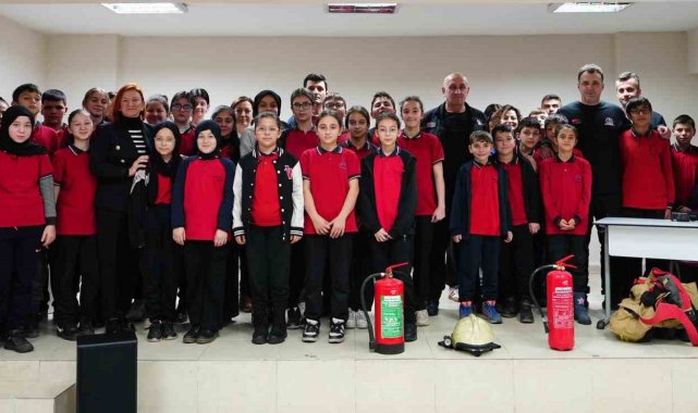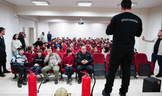 DÜZCE(İHA) – Düzce'de Dönem Sonu Faaliyet Haftasında öğrenciler hem eğlendi hem de öğrendiler. Düzce Belediyesi İtfaiye Müdürlüğü ekipleri yangınlarla ilgili bilgiler verirken Zabıta ekipleri mesleklerini anlattı.2024-2025 eğitim öğretim yılının ilk dönemi sona ererken, öğrencilerin hem eğlenceli hem de öğretici zaman geçirmelerini sağlamak amacıyla 13-16 Ocak tarihleri arasında "Dönem Sonu Faaliyet Haftası" düzenleniyor. Bu kapsamda Düzce Belediyesi Zabıta ve İtfaiye personelleri, okullara konuk olarak öğrencilere çeşitli bilgiler veriyor. Azmimilli Ortaokulu'na yapılan ziyarette, zabıta ve itfaiye ekipleri öğrencilerle buluşarak, güvenlik, yangın güvenliği ve toplumsal sorumluluklar konusunda bilinçlendirici bilgiler sundu. Ekiplerin sunumlarını dikkatle dinleyen öğrenciler, acil durumlar ve güvenlik önlemleri hakkında önemli bilgiler edindiler.Ayrıca, Şehit Cihan Aksarı Ortaokulu'nda düzenlenen tecrübe paylaşımı söyleşisine de Düzce Belediyesi İtfaiye personeli konuk oldu. İtfaiye çalışanı, öğrencilerle yangın güvenliği ve itfaiyeciliğin zorlukları hakkında deneyimlerini paylaştı, öğrencilerin sorularını yanıtladı.
