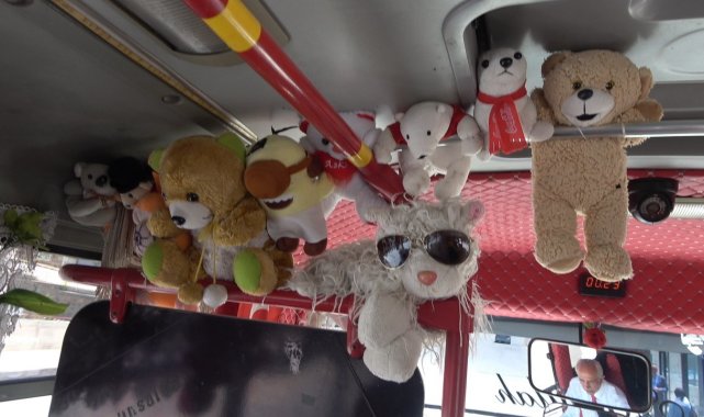 Yozgat'ta halk otobüsü şoförlüğü yapan Musa Ünsal, kendine has tarzı ve otobüsü ile dikkatleri üzerine çekiyor. Halk arasında 'Süslü' lakabıyla bilinen şoför, aynı zamanda ödüllü şoför olarak biliniyor.Genç yaşlarında abisinden görerek heves ettiği şoförlük mesleğini 33 yıldır sürdüren Musa Ünsal, farklı özellikleriyle dikkat çekiyor. Çok sevdiği işi için her özenle seçtiği kıyafetleri giyen Ünsal, tarzını otobüsüne de yansıtıyor. Otobüsünü pelüş oyuncakların yanı sıra yolcuların ihtiyaç duyabileceği ıslak mendil, peçete, toka, eşarp iğnesi, yara bandı gibi eşyalarla donatan Musa Ünsal, müşterilerinden tam not alıyor. Meslektaşları ve vatandaşlar tarafından 'Süslü' veya 'Sosyete' lakabı söylenen Ünsal, meslektaşlarına örnek oluyor."Otobüs bizim evden temiz' diyen bile oluyor"İşine gösterdiği özenin karşılıksız kalmadığını söyleyen Ünsal, "Yolculara karşı davranış ve kılık kıyafetimden dolayı 2017 yılında 'Yılın Örnek Şoförü' seçildim. Şoförler Odası Cemiyeti ve Emniyet Müdürlüğü bana bu ödülü verdi. Aracımın süslemelerini ise yolcular çok beğeniyor. Ben de böyle olmasını çok seviyorum. Birkaç kez sökülse de yeniden taktım. Yolcular çok nostaljik buluyor. 'Otobüs bizim evden temiz' diyen bile oluyor bazen. Yerde halımız var. Onu da temiz tutuyorum. 'Arabanız böyle, eviniz nasıl?' diyenler de oluyor. Evde hanımın işlerine karışmam ama otobüs beni temsil ediyor" dedi."Otobüsümüzde çöp kutusu da var, kimse çöpünü dışarı atmamalı"Bir yolcunun ihtiyaç duyabileceği pek çok şeyi bulunduran Ünsal, "Otobüsümüzde ıslak mendil, peçete, toka, eşarp iğnesi, yara bandı bulunduruyorum. Çöp kutuları da var. Bazen yolcular çöplerini camdan dışarı atıyor. Ben hemen uyarıyorum. Otobüste çöp kutusu olduğunu söylüyorum. Zaten otobüsümü de günlük temizliyorum" diye konuştu."Musa Ağabeyime 'Süslü' veya 'Sosyete' derler"Kentte şoförlük yapan Umut Türkyılmaz ise, "Musa Ağabeyime 'Süslü' veya 'Sosyete' derler. Ağabeyim gördüğünüz gibi şık. Buranın sevilen simalarından. Arabası da temiz, oyuncaklı, halısı da var. Aynı evi gibi. Evinden daha temiz bakıyor aracına. Yozgat'ın sevilen simalarından" şeklinde konuştu.Musa Ünsal'ın otobüsünde yolculuk yapan Ali Dönmez, "Musa beyi kaptanlığından, şoförlüğünden tanıyorum. Arabası da bakımlı, girdiğin zaman huzur buluyorsun. Sevdiğimiz bir insan, davranışlarıyla örnek birisi" şeklinde konuştu.