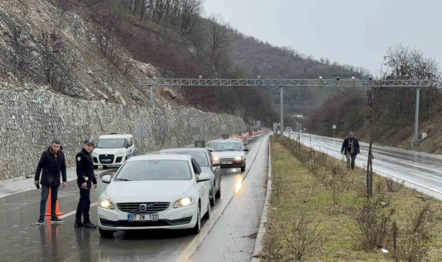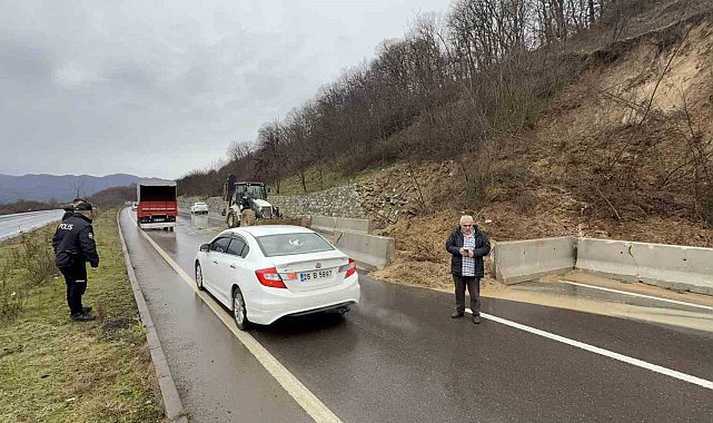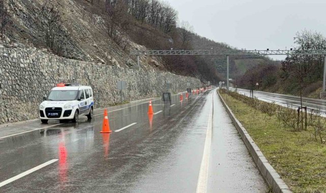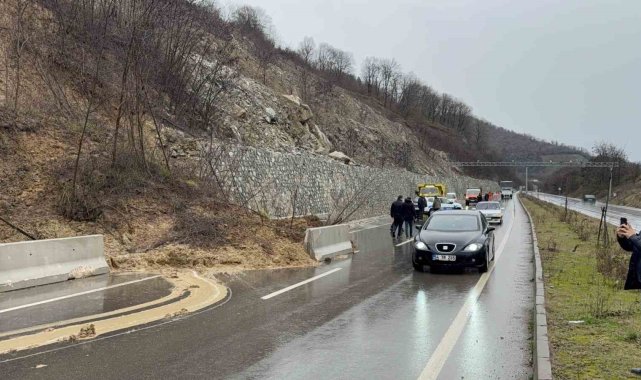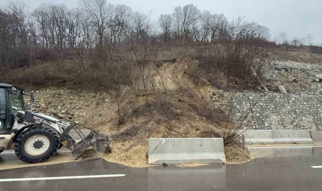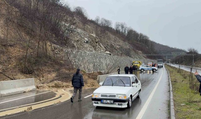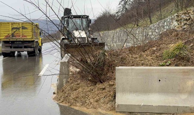 Düzce'de sağanak yağışlar Gölyaka ilçe yolunda heyelana sebebiyet verdi. Yol tek şeritten verilirken, heyelan kaldırma çalışmalarına başlandı.