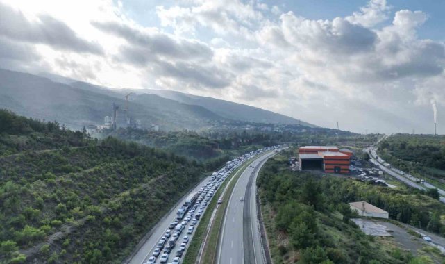 Hatay'da heyelan nedeniyle kapanan Toprakkale-İskenderun Otoyolu'nda oluşan kilometrelerce uzunluğundaki araç kuyruğu dron ile havadan görüntülendi.