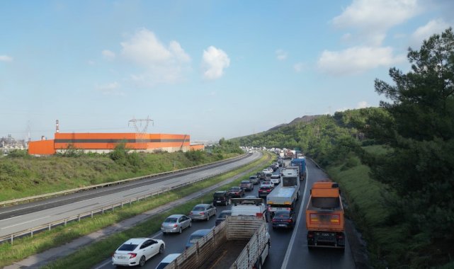 Heyelanın kapattığı yolda kilometrelerce araç kuyruğu oluştu