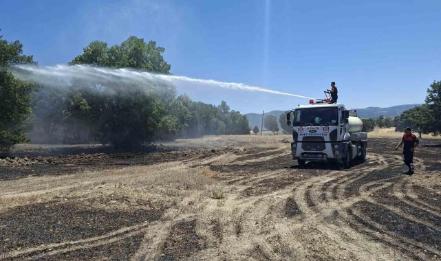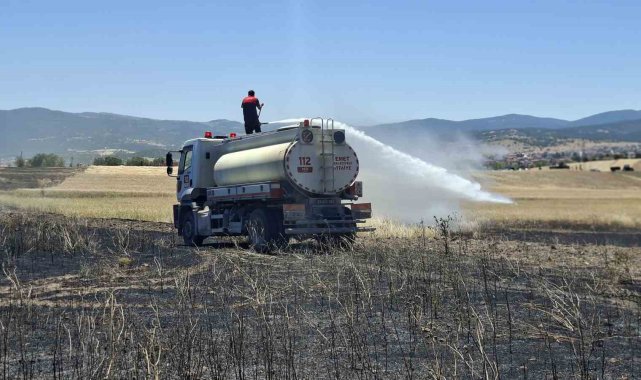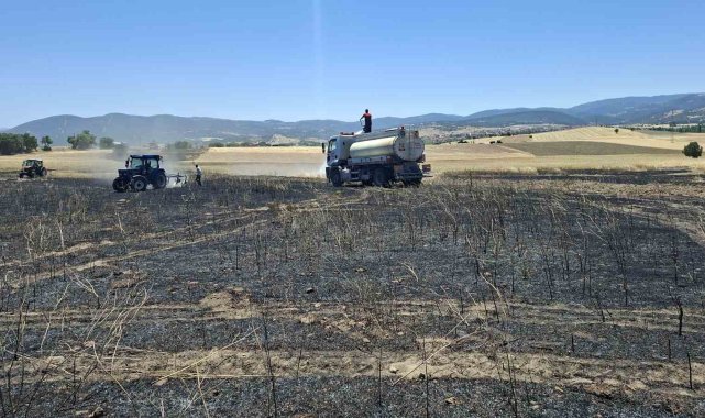 Kütahya'nın Hisarcık ilçesinde biçerdöverden çıkan kıvılcımın otluk alanı tutuşturması sonucu çıkan yangında 30 dekarlık boş ve hububat ekili alan zarar gördü.