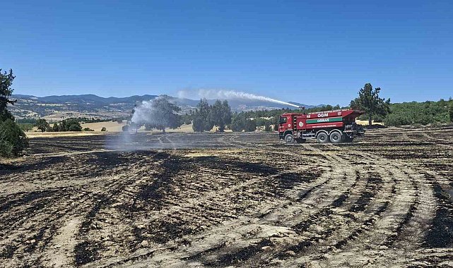 Hisarcık'ta biçerdöverden kaynaklanan yangın 30 dekar alanı kül etti