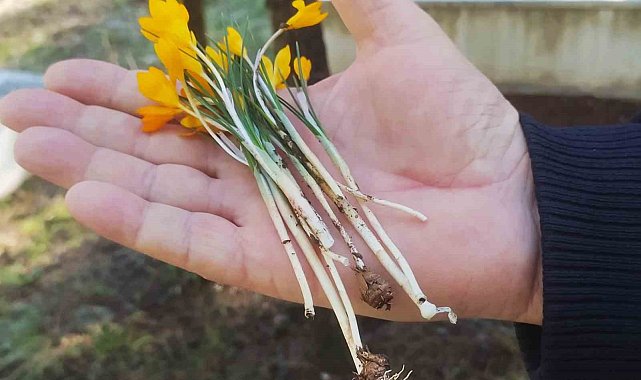 Kütahya'nın Hisarcık ilçesinde Ocak ayı olmasına rağmen havaların ılıman gitmesi baharın müjdecisi çiğdemlerin erken çiçek açmasına neden oldu.