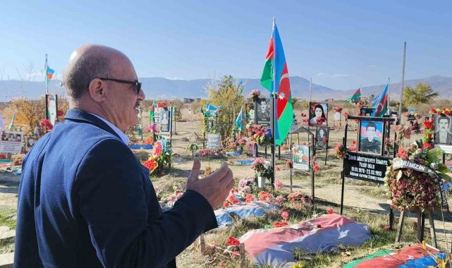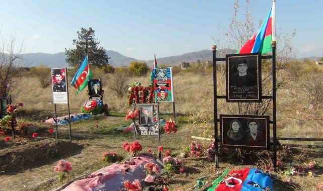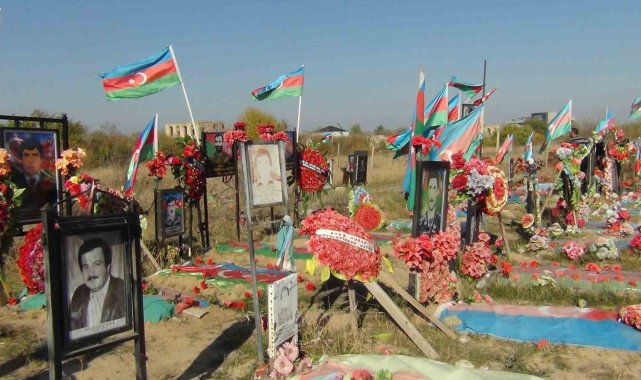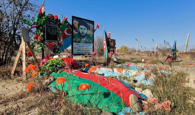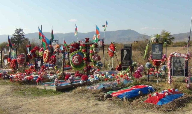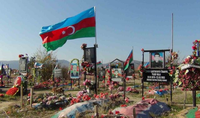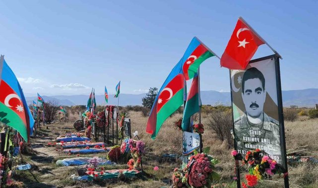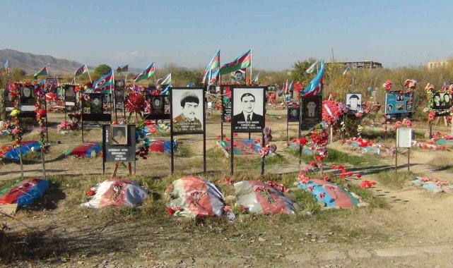 Hocalı'da yer gök Azerbaycan, Ağdam'da bulunan şehit mezarlarında Azerbaycan-Türkiye bayrakları dalgalanıyor.