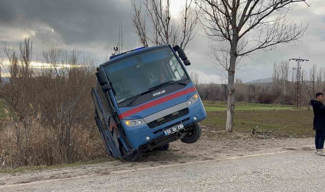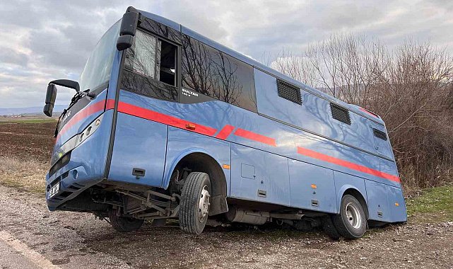 Çorum'un Sungurlu ilçesinde hükümlü taşıyan nakil aracının yoldan çıkarak yan yattı. Araçta bulunanlar kazayı yara almadan atlattı.