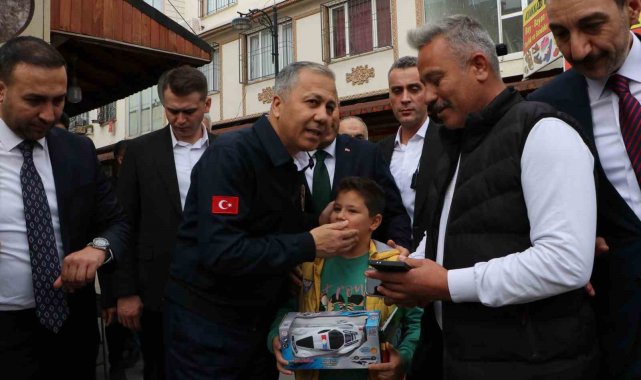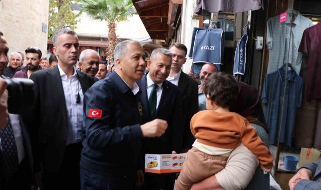 İçişleri Bakanı Ali Yerlikaya, Kilis'te esnafı ziyaret ederek vatandaşlarla sohbet etti, çocuklara hediye dağıttı.