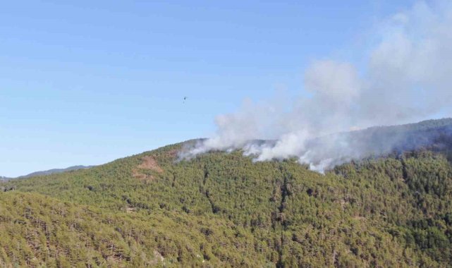 İki ilin sınırında çıkan orman yangını havadan görüntülendi
