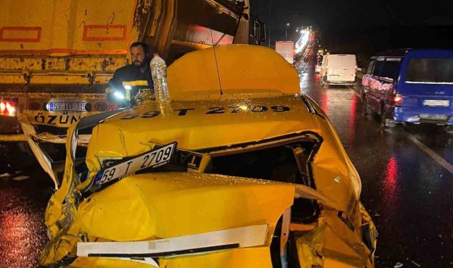 Kaza, yağışının etkisini sürdürdüğü akşam saatlerinde Çorlu Çevre Yolu üzerinde meydana geldi. M.S.'nin kullandığı taksi, V.S.'nin kullandığı hafriyat kamyonu ile N.D.'nin kullandığı süt kamyonu zincirleme kazaya karıştı. İki kamyonun arasında kalarak hurdaya dönen takside sürücü M.S. yaralandı. Yaralı sürücü, olay yerine gelen sağlık ekiplerinin ilk müdahalesinin ardından ambulansla Çorlu Devlet Hastanesi'ne kaldırılarak tedavi altına alındı.