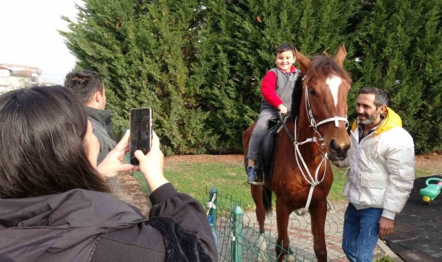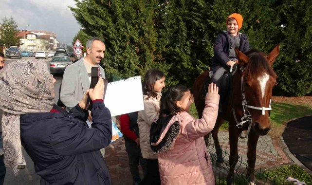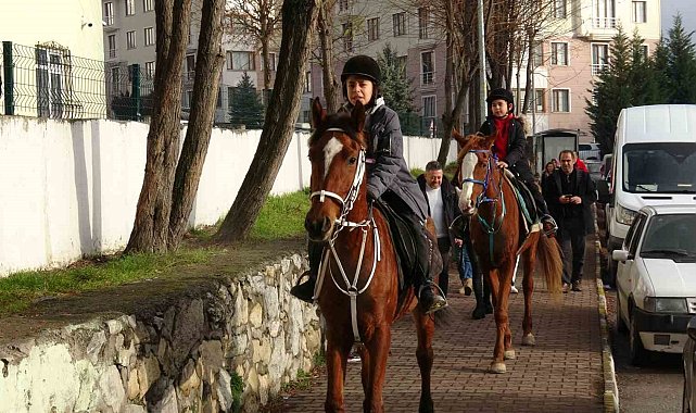 Karabük'ün Safranbolu ilçesinde ilkokul öğrencisi 2 kardeş, karne almaya atlarla geldi.Mustafa Antepoğlu İlkokulu 4.sınıf öğrencisi Selahattin Mert Yaşar ve kardeşi 2.sınınf öğrencisi Ömür Yaşar, yaklaşık 1 kilometre uzaklıktaki evlerinden karne almak için atların üstünde okula geldi. Kardeşler, vatandaşların şaşkın bakışları arasında atlarından inip sınıflarına girdi. Bazı veliler, çocuklarıyla birlikte ´Umay´ ve ´Aydeniz´ isimli atlara ilgi göstererek başlarını okşayıp sevdi ve hatıra fotoğrafı çekildi.Okuldan çıkan kardeşler, zayıf bulunmayan karnelerini Safranbolu Atlı Spor Kulübü Başkanı olan Sıddık Yaşar'a gösterdi. Çocuklarının 2.5-3 yaşlarından itibaren atları sevdiklerini belirten Yaşar, ''Uzun süredir atlara biniyorlar. Atlara binmeleri telefondan ve tabletten uzak durmalarına fayda sağlıyor. Daha fiziki olarak güçleniyorlar, özgüvenleri artıyor ve kaygıları azalıyor. Bunlardan dolayı atlarla ilişkileri yoğun seviyede'' dedi.Çocuklarını atların üstünde görenlerin şaşkınlık yaşadığına dikkat çeken Yaşar, ''Bir değişiklik yapmak istediler. Baba 'Sen araba sürüyorsun, biz at sürüyoruz' dediler. Arabayı kendileri süremedikleri için atlarla geldiler. Vatandaşlar şaşkın bir şekilde bakıyorlar, insanların ilgi odağı oluyorlar" diye konuştu.Ömür Yaşar ise atları çok sevdiğini söyledi.Selahattin Mert Yaşar da, "2 yaşından itibaren ata biniyoruz. Ata binince kendimi güvende gibi hissediyorum'' şeklinde konuştu.Kardeşler, atların üstünde evlerinin yolunu tuttu.