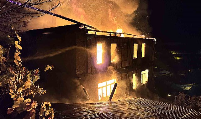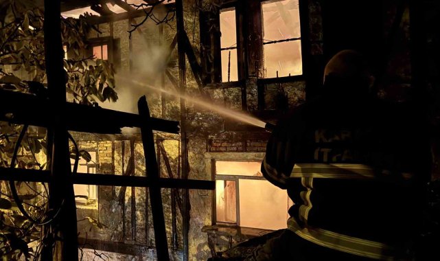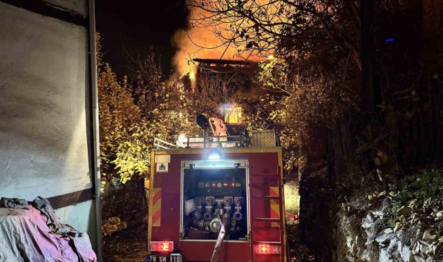Karabük'ün Safranbolu ilçesinde iki katlı ahşap evde çıkan yangını söndürme çalışmaları sürüyor.
