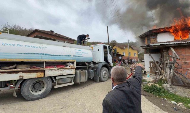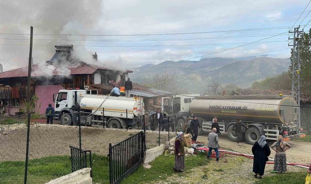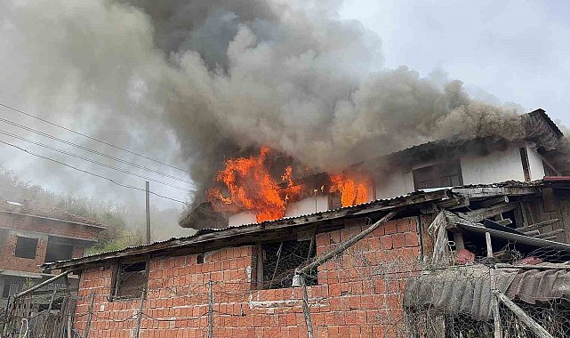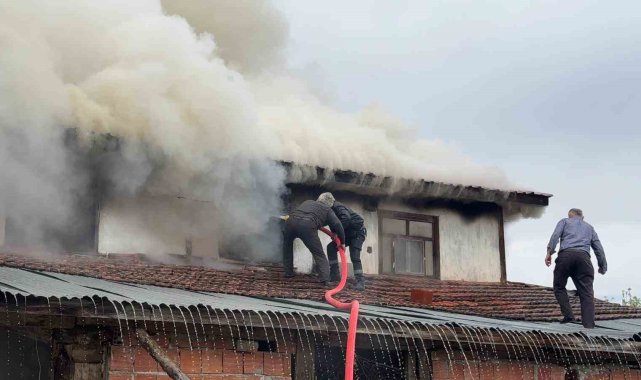 İki katlı ev alev alev yandı