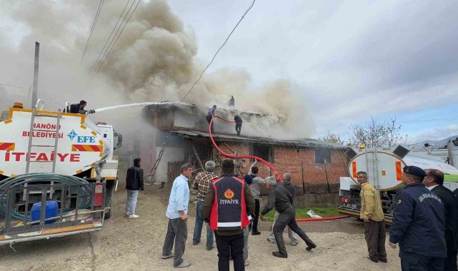 Kastamonu'nun Hanönü ilçesinde çıkan yangında iki katlı ev kullanılmaz hale geldi.