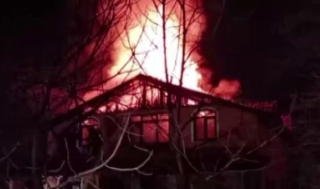 İki katlı ev alev topuna döndü