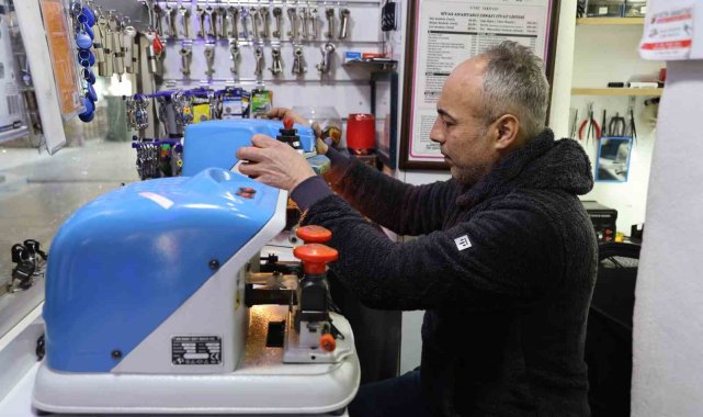 Sivas'ta anahtarcılık yapan Fatih Boztepe iki metrekarelik dükkânından kazandığı parayla iki çocuğunu okutuyor.Sivas'ta Fatih Boztepe (48) tarafından işletilen anahtarcı dükkânı boyutu ile dikkat çekiyor. Tek kişinin sığabildiği dükkânda müşterilerine anahtarcılık hizmeti veren Boztepe, dükkânına da misafir kabul edemiyor. Gelen müşterileriler ve arkadaşlarıyla ancak dükkân vitrinindeki pencereden iletişim kurabiliyor. Asansör kabini büyüklüğündeki dükkânında her türlü anahtarcılık ve çilingir hizmeti verebiliyor. İki metre karelik dükkânında her türlü kapıyı açabildiğini dile getiren Boztepe, daha büyük dükkâna geçmeyi düşünmediğini ve bu mesleği devam ettirmeyi istediğin ifade etti."Dükkân küçük olduğu için çırak alamıyorum"Dükkanının küçük olmasından dolayı çırak alıp iş öğretemediğini söyleyen Boztepe, "20 yılıdır bu işi yapıyorum. Ekmeğimi bu iş ile kazanıyorum. 2 metrelik dükkânımla bir üniversite bir de ilkokul öğrencisi çocuklarımı okutturuyorum. Çok şükür rızkımızı buradan kazanıyorum. 2 Metrelik dükkânım da açamayacağım kapı yok. Gidip her türlü işi hallediyorum. Evlere, arabalara, ilçelere ve köylere çilingir hizmeti gibi işler de yapıyorum. Yerim küçük olduğu için dükkânıma misafir kabul edemiyorum. Bu mesleği devam ettirmeyi düşünüyorum. Dükkânım küçük olduğu için çırak yetiştiremiyorum. O geldiği zaman ben sığmam ben çalıştığım zaman da o sığamaz. İki kişi burada çalışamayız. Bu dükkânı görenler şaşırıyor ve yerimin küçük olduğunu söyleyip helal olsun diyorlar. Buraya artık alıştım, daha büyük dükkâna geçmeyi düşünmüyorum. Hem müşteri de artık burayı tanıdı alıştı" şeklinde konuştu."Yeri küçük, hizmeti büyük"Dükkânın küçük olduğunu ancak yapılan hizmetin büyük oluğunu ifade eden daimi müşteri Yusuf Mülayim, "Yeri küçük ama hizmeti büyük. Küçük bir alanda çalışıyor ama verdiği hizmetten çok memnunuz. Açamadığı kapı, veremediği hizmet yoktur. Yanına oturup sohbet edemiyoruz dışarıdan ulaşabildiğimiz kadar duruyoruz. İçeride geçip çay içmek mümkün olmasa da dışarıdan muhabbet ile işimizi yürütüyoruz" dedi.
