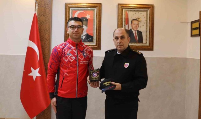 Jandarma Gücü Komutanlığı 1. Spor Branş Kurul Başkanı Jandarma Öğretmen Yarbay Mustafa Gürker Tepe ve Jandarma Gücü Oryantiring Takımı sporcusu Jandarma İkmal Yüzbaşı Harun İşler, Aydın İl Jandarma Komutanı Jandarma Albay Ali Naci Aldemir'i makamında ziyaret etti.