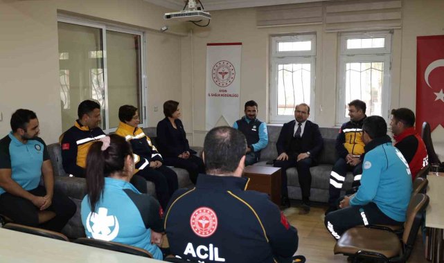 Aydın İl Sağlık Müdürü Dr. Eser Şenkul, '1-7 Aralık Acil Sağlık Hizmetleri Haftası' kapsamında Efeler 1 Nolu Acil Sağlık Hizmetleri UMKE İstasyonu'na giderek sahada görev yapan personelle bir araya geldi.