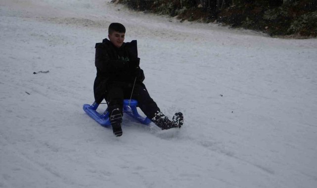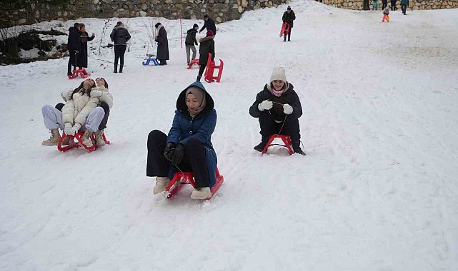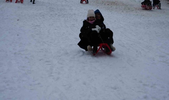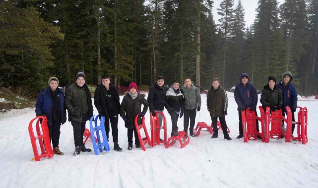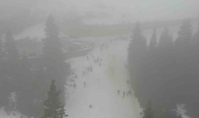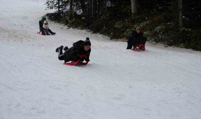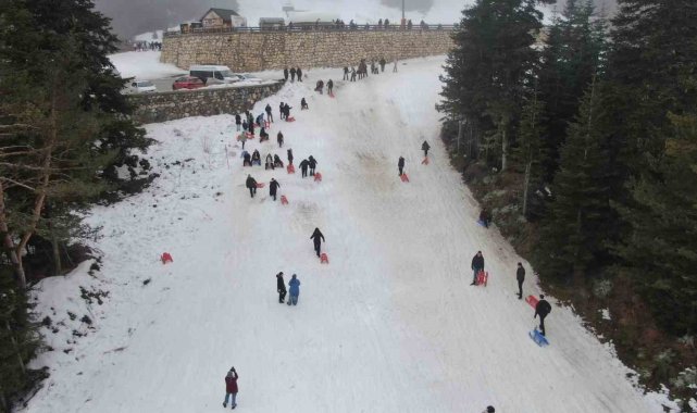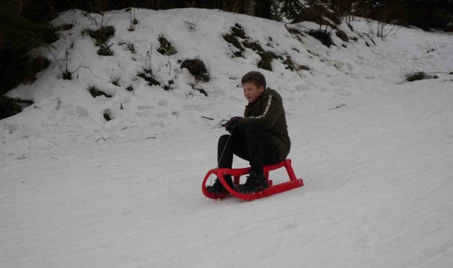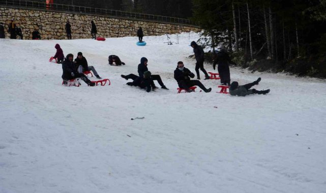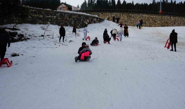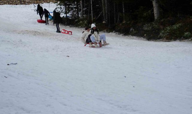 Okulların yarıyıl tatiline girmesiyle birlikte karnesini alan öğrenciler, aileleri ile birlikte Ilgaz Dağı'nın yolunu tuttu. Kızaklarla kayan öğrenciler, sınav ve okul stresini attı.