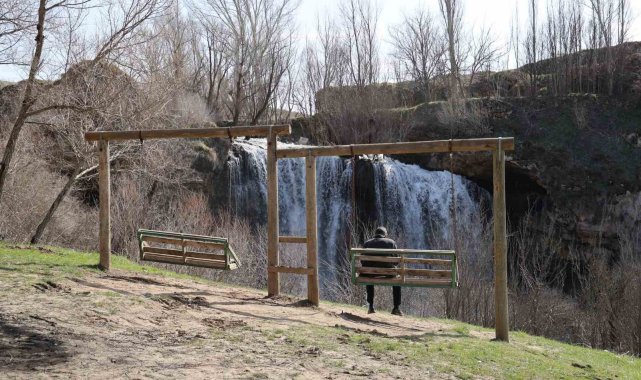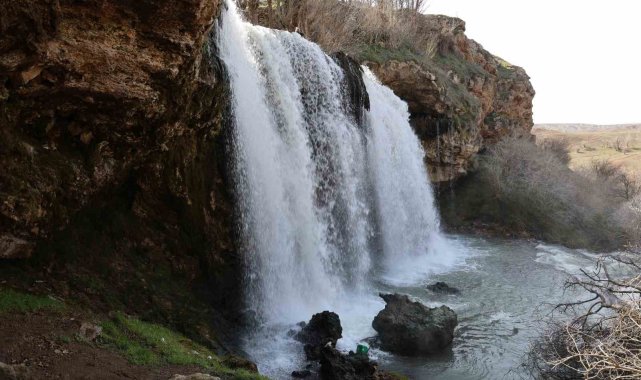 Sivas'ta yer alan ve 27 metre yükseklikten dökülen Değirmenaltı Şelalesi, ilkbahar ile birlikte coştu.