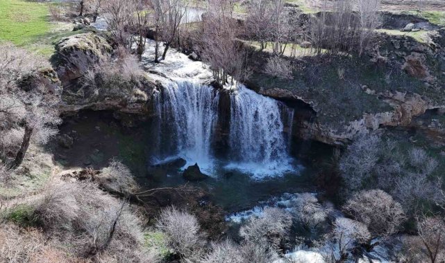 Sivas'ta yer alan ve 27 metre yükseklikten dökülen Değirmenaltı Şelalesi, ilkbahar ile birlikte coştu.Sivas kent merkezine 53 kilometre uzaklıktaki Yıldız Beldesi'nde yer alan Değirmenaltı Şelalesi, her mevsim farklı manzaralar sunuyor. Yaz aylarında yüzlerce misafiri ağırlayan şelale, ilkbahar ile birlikte coştu. Kış boyunca yağan karın erimesi ve bahar yağmurlarının artmasıyla birlikte coşan şelale, eşsiz görüntüler oluşturdu. Yaklaşık 27 metre yükseklikteki sarp kayalardan dökülen Değirmenaltı Şelalesi, dron ile görüntülendi.