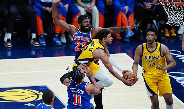 NBA'de Doğu Konferansı final serisi 4. maçında Indiana Pacers, konuk ettiği New York Knicks'i 130-121'lik skorla yendi ve 3-1 öne geçti.NBA'de heyecan tek mücadeleyle devam etti. Doğu Konferansı finalinde Indiana Pacers, evinde karşılaştığı New York Knicks'i 130-121'lik skorla mağlup etti ve seriyi 3-1 yaptı. Indiana'da Tyrese Haliburton 32 sayı, 15 asist ve 12 ribaund ile oynayarak triple double yaparken, Pascal Siakam 30 sayı ve Bennedict Mathurin de 20 sayıyla eşlik etti. New York'ta ise Jalen Brunson 31 sayı, Karl-Anthony Towns da 24 sayı, 12 ribaund ile double double yaptı.Indiana Pacers bir sonraki müsabakadan galip ayrılması durumunda NBA finaline yükselecek.