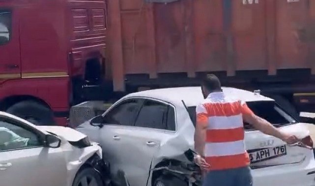 Bursa'nın İnegöl ilçesinde 3 otomobil ile kamyonun karıştığı zincirleme kazada 5 kişi yaralandı.