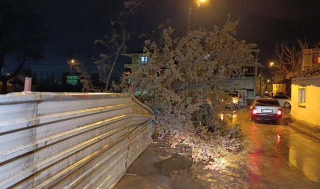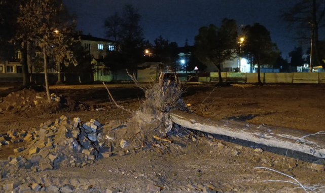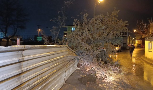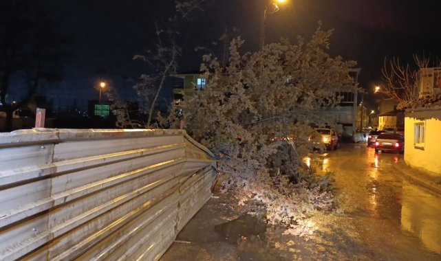 Bursa'nın İnegöl ilçesinde bir inşaat alanında bulunan ağaç, yağış ve rüzgarın etkisiyle kökünden çıkarak yola devrildi. Olay sırasında yoldan geçen kimsenin olmaması muhtemel bir facianın önüne geçti.