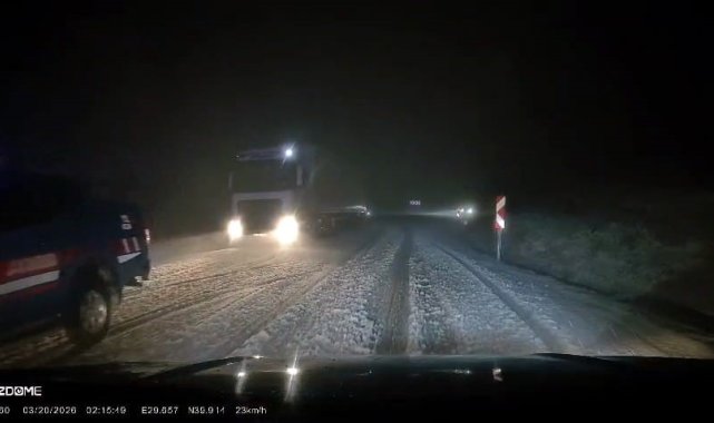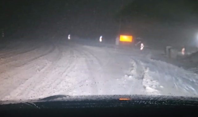 Bursa'nın İnegöl ilçesi ile Kütahya'nın Domaniç ilçesini birbirine bağlayan karayolunda etkili olan yoğun kar yağışı, sürücülere zor anlar yaşattı.Akşam saatlerinde başlayan kar yağışı kısa sürede etkisini artırırken, yolun karla kaplanması ulaşımı olumsuz etkiledi. Özellikle yaz lastiğiyle yola çıkan bazı sürücüler, kayganlaşan zeminde ilerlemekte güçlük çekti. Bazı araçlar yolda kalırken, trafikte zaman zaman aksamalar yaşandı.Olumsuz hava şartları nedeniyle bölgede önlem alan İnegöl Jandarma Komutanlığı ekipleri, sürücüleri dikkatli olmaları konusunda uyardı. Ekipler, kış lastiği ve zincir bulunmayan araçların yola kontrollü şekilde devam etmeleri için denetimlerini artırdı.Kar yağışının etkisini sürdürdüğü karayolunda, güvenlik amacıyla ağır tonajlı araçların geçişine ise izin verilmedi.Yetkililer, güzergahı kullanacak sürücülere kış lastiği, zincir ve gerekli ekipman olmadan yola çıkmamaları yönünde çağrıda bulundu.