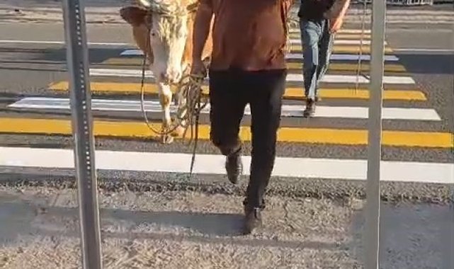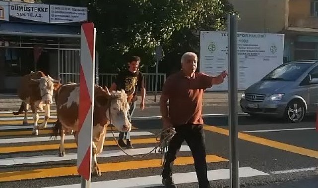 İnekler yaya geçidini kullandı, sahibi "Mecburen" dedi
