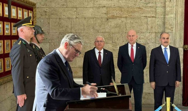 İngiltere Başbakanı Keir Starmer, resmi ziyarette bulunmak üzere geldiği Ankara'da Anıtkabir'i ziyaret etti.İngiltere Başbakanı Keir Starmer Türkiye'de gerçekleştirdiği resmi temaslar öncesinde, Anıtkabir'i ziyaret etti. Resmi ziyaret kapsamında Ankara'ya gelen İngiltere Başbakanı Starmer, Milli Savunma Bakanı Yaşar Güler, İngiltere Savunma Bakanı John Healey, Türk Hava Kuvvetleri Komutanı Orgeneral Ziya Cemal Kadıoğlu, İngiltere'nin Ankara Büyükelçisi Jill Morris ve beraberindeki heyet ile Anıtkabir'e Aslanlı Yoldan giriş yaptı. Atatürk'ün mozolesine çelenk bırakmasının ardından saygı duruşunda bulunan heyet Anıtkabir önünde fotoğraf verdi. Misak-ı Milli Kulesine beraberindeki heyet ile geçen Stramer, Anıtkabir Özel Defterini imzaladı.İngiltere Başbakanı Starmer özel deftere, şunları yazdı:"Modern Türkiye'nin kurucusu Mustafa Kemal Atatürk'e saygılarımı sunmak benim için bir onurdur. Birleşik Krallık ile Türkiye, güçlü müttefikler ve güvenilir dostlar olarak köklü ve kalıcı bağlara sahiptir. Bu bağlar, önümüzdeki yıllarda iş birliğimizi daha da güçlendirdikçe gelişmeye devam edecektir."