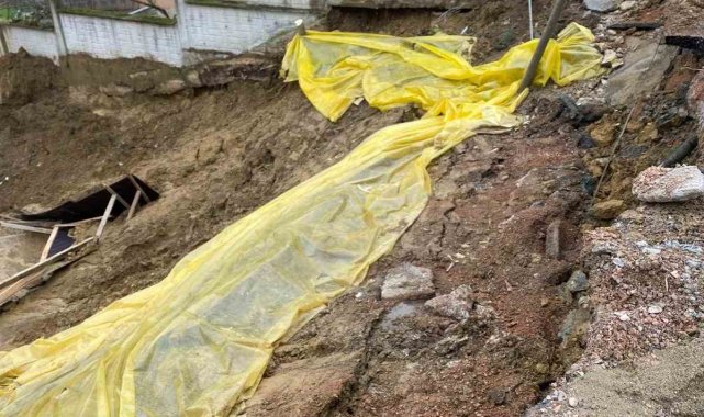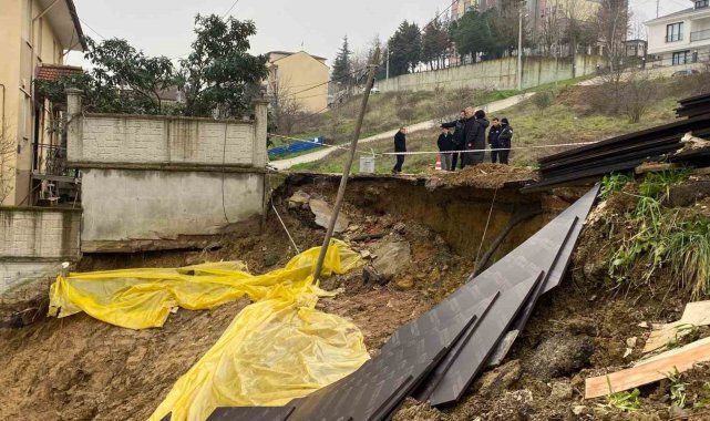 Kocaeli'nin İzmit ilçesinde inşaat çalışması sırasında meydana gelen toprak kayması nedeniyle yolun bir bölümü çökerken, bir binanın istinat duvarı yıkılarak otoparkı hasar gördü.Tüysüzler Mahallesi Esra Sokak üzerindeki inşaat şantiyesinde, zeminin yağışlar nedeniyle yumuşaması sonucu istinat noktasında çökme meydana geldi. Olayda, yolun inşaat alanına bakan kısmı koparak aşağı kaydı. Çökmenin etkisiyle inşaat alanındaki ahşap kalıplar ve bazı malzemeler çukura sürüklenirken, bir apartmana ait otopark alanı hasar gördü ve bahçe duvarı yıkıldı. Yer altından geçen şebeke suyu ve diğer altyapı hatları da zarar gördü.İhbar üzerine bölgeye polis, itfaiye ve Kocaeli Büyükşehir Belediyesi ekipleri sevk edildi. Olay yerine gelen itfaiye ve belediye ekipleri, derin yarıkların oluştuğu yol kenarına güvenlik şeridi çekerek sokağı araç ve yaya trafiğine kapattı.Olay yerinde çalışmalar sürüyor.