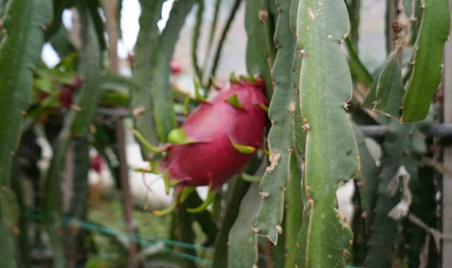 Bilecik'te 210 metrekare serada yılda 5 kere ejder meyvesi hasadı yapan Mehmet Kılıç, taleplere yetişemediğini ve pazar sorunu da olmadığı söyledi