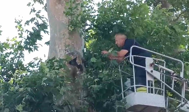 Tekirdağ'ın Çorlu ilçesinde ayağına ip dolanarak ağaca asılı kalan karga, itfaiye ekiplerinin müdahalesiyle kurtarıldı. Vatandaşlar film izler gibi operasyonu takip etti.Olay, Çorlu ilçesi Hıdırağa Mahallesi'nde meydana geldi. Bir karganın ayağına dolanan ip nedeniyle ağaca asılı kaldığını fark eden vatandaşlar, durumu itfaiye ekiplerine bildirdi. İhbar üzerine bölgeye gelen ekipler, itfaiye aracının merdivenini ağaca dayayarak kargayı bulunduğu yerden dikkatlice kurtardı. Vatandaşlar, nefes kesen kurtarma operasyonunu ilgiyle izledi. Bazı vatandaşlar ise cep telefonlarıyla o anları kayda aldı.Başarılı müdahalenin ardından itfaiye ekipleri vatandaşlardan alkış aldı. Ağaçtan indirilen karganın ayağına dolanan ip, itfaiye personeli tarafından temizlendi. Sağlık durumu iyi olan karga doğaya yeniden salındı.
