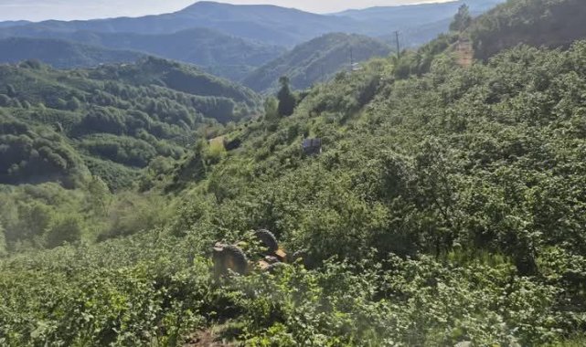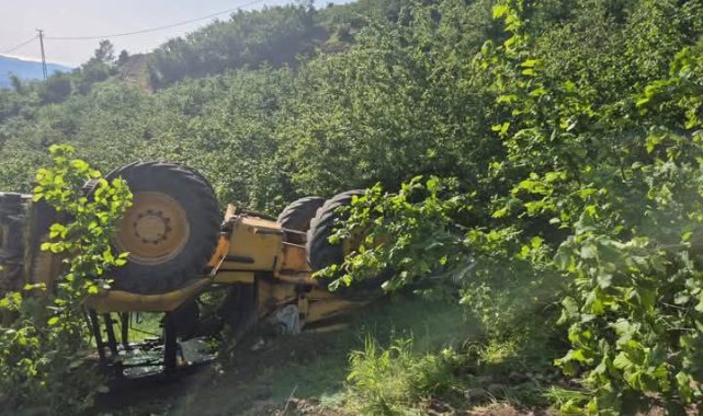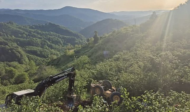 Zonguldak'ın Alaplı ilçesinde kontrolden çıkan iş makinesinin şarampole devrildiği kazada operatör, araçtan atlayarak kurtuldu.