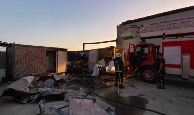 Antalya'nın Serik ilçesinde plastik kasa deposunda çalışan işçilerin kaldığı konteynerde yangın çıktı.