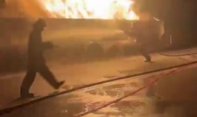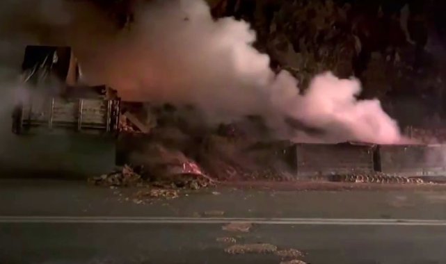 Isınan tekerlek balatalarından çıkan alevler sunta yüklü tırı yaktı