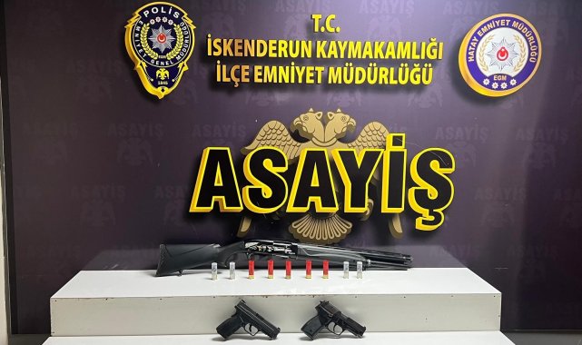 Hatay'ın İskenderun ilçesinde genel güvenliği tehlikeye düşüren 3 kişi yakalanarak gözaltına alındı.Hatay Emniyet Müdürlüğü görevlilerince, İskenderun İnönü Mahallesinde bulunan bir düğün salonunda meydana gelen genel güvenliğin kasten tehlikeye sokulması olayı ve Barbaros Mahallesi Fener Caddesinde meydana gelen genel güvenliğin kasten tehlikeye sokulması olayının şüphelileri olarak tespit edilen F.A., A.T. ve D.K. adlı 3 şahıs yakalanarak gözaltına alındı.Şahısların yapılan üst aramasında; 2 adet ruhsatsız tabanca, 2 adet şarjör, 1 adet tüfek, 9 adet dolu fişek ele geçirildi.Olayla ilgili olarak adli makamlara sevk edilen şahıslardan A.T. ile D.K. tutuklanarak cezaevine gönderildi.