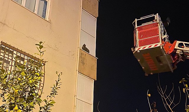 İskenderun'da balkonda mahsur kalan kediyi itfaiye kurtardı