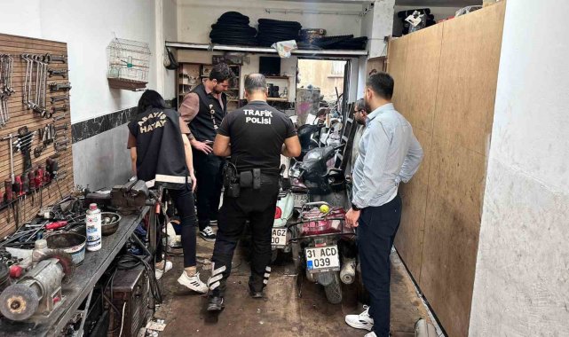 Hatay'ın İskenderun ilçesinde polis ekipleri tarafından motosiklet tamircilerine yönelik denetim yapıldı, işyerlerinde bulunan 62 motosiklet kontrol edildi.