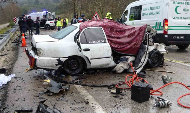 Isparta-Antalya karayolunda iki otomobilin kafa kafaya çarpıştığı kazada 2 kişi hayatını kaybetti, 4 kişi yaralandı. Kazada ölen ve 1,5 ay önce nişanlandıkları öğrenilen çiftin yakınları sinir krizi geçirdi.
