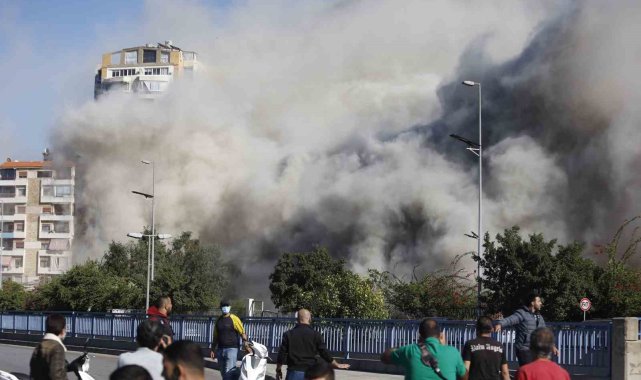 İsrail'in Lübnan'ın güneyindeki Ghobeiry bölgesinde füzeyle vurduğu bina yerle bir oldu.İsrail, Lübnan'ın başkenti Beyrut'un güneyine saldırılarını sürdürüyor. İsrail ordusu tarafından yapılan açıklamada, Hizbullah'ın bölgedeki tesislerine yönelik askeri operasyon düzenleneceği, bu nedenle Ghobeiry bölgesinin terk edilmesi uyarısı yapıldı. Ordu Sözcüsü Avichay Adraee sosyal medya hesabından hedef alınacak iki binanın haritadaki konumunu paylaşarak, "Kendi güvenliğiniz ve ailenizin güvenliği için bu binaları ve çevredeki binaları derhal boşaltmalı, bölgeden en az 500 metre uzaklaşmalısınız" dedi.İsrail, tahliye çağrısının ardından Ghobeiry bölgesindeki bir binayı vurdu. İsrail'in füzeyle hedef aldığı bina yerle bir olurken gökyüzü toz bulutuyla kaplandı.