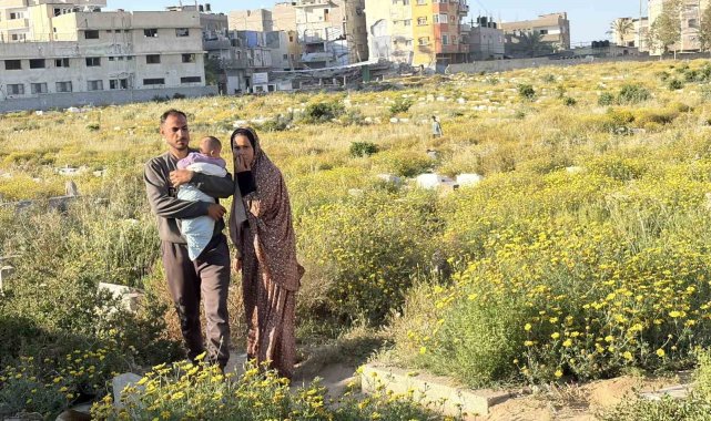 İsrail saldırıları sonrası yerinden edilen Gazzeli Halid ez-Zaanin, barınacak yer bulamayınca ailesiyle birlikte mezarlığa sığınmak zorunda kaldı.İsrail'in 7 Ekim 2023'ten bu yana Gazze Şeridi'ne yönelik sürdürdüğü askeri operasyonlar, bölgede benzeri görülmemiş bir insani yıkıma yol açtı. Altyapının büyük ölçüde tahrip olduğu, konutların geniş çapta kullanılamaz hale geldiği bölgede, yüz binlerce kişi yerinden edilirken; barınma, gıda ve temiz suya erişim her geçen gün daha da zorlaşıyor. Uluslararası kuruluşların "insani felaket" olarak nitelendirdiği tabloda, siviller hayatlarını sürdürebilmek için giderek daha umutsuz şartlara itiliyor. Zor şartlarda mahkum edilen Filistinli Halid ez-Zaanin, İsrail saldırıları sonrası evini kaybederek, yerinden edildi. Barınacak yer bulamayan ez-Zaanin, ailesiyle birlikte mezarlığa sığınmak zorunda kaldı. Mezarlıkta küçük bir çadırda yaşayan Halid ez-Zaanin, içinde bulunduğu zorlu süreci anlattı. Filistinli Halid ez-Zaanin, 7 Ekim'de İsrail'in bölgeye yönelik operasyonlarının başlamasıyla Cibaliye Mülteci Kampı'ndaki evini terk ettiğini belirtti. Gazze'nin batısından güneyine kadar farklı bölgelere gitmek zorunda kaldığını ancak evine dönemediğini söyleyen Filistinli ez-Zaanin, "Gazze'nin güneyinde boş bir yer aradım ama bulamadım. Arazi sahipleri kalmam için para istiyor, benim ise param yok. Bu yüzden mecburen ölülerin arasında, bir mezarlıkta yaşamaya başladım" ifadelerini kullandı."Param olmadığı için ölülerin arasında yaşamaya mecburum"Mezarlıkta ailesiyle birlikte son derece zor şartlarda hayat mücadelesi veren Zaanin, her yönden tehlikelerle çevrili olduklarını belirterek, "Fareler, köpekler, kediler, yılanlar ve haşerelerle birlikte yaşıyorum. Ne düzgün bir çadırım, ne suyum, ne giyecek kıyafetim, ne işim ne de yiyeceğim var. Kızım Habibe on yıl süren bekleyişin ardından doğdu. Böyle bir çocuğun mezarlıkta yaşaması kabul edilebilir mi? Oyuncaklarının arasında, güvenli bir ortamda olması gerekirdi; yılanların ve ölümün ortasında değil" dedi.İsrail saldırılarında annesini, babasını ve kardeşini kaybettiğini ifade eden Halid ez-Zaanin, "Eğer bir yılan kızımı ısırırsa, ne kazanmış olacağım. Param olmadığı için ölülerin arasında yaşamaya mecburum. Bu bir hayat değil. Kızımın hayatının benimkinden daha iyi olması için dua ediyorum" şeklinde konuştu.İsrail'in Gazze Şeridi'ne yönelik 7 Ekim 2023'ten bu yana sürdürdüğü saldırılar, büyük yıkıma yol açtı. Bölgede altyapı ve binaların yüzde 90'ından fazlası hasar gördü ya da yıkıldı. Yaklaşık 300 bin konutun kullanılamaz hale geldiği ve yaklaşık 1,9 milyon kişinin yerinden edildiği belirtiliyor.
