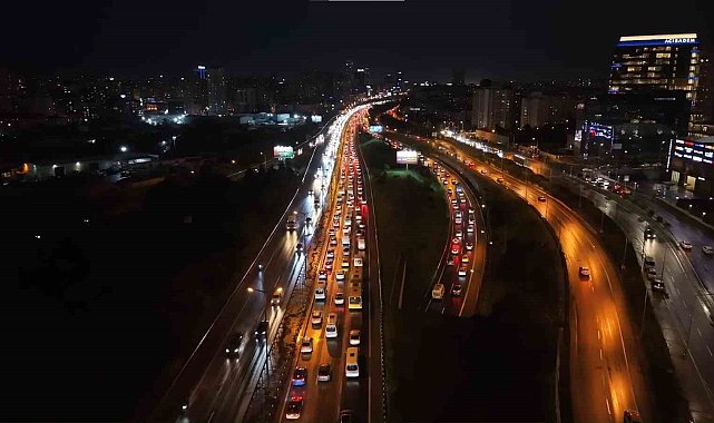 İstanbul Anadolu Yakası'nda akşam saatlerinde trafik yoğunluğu yüzde 90 seviyesine ulaştı. Zaman zaman tamamen duran trafik havadan görüntülendi.İstanbul'da iş çıkış saatlerinin etkisiyle Anadolu Yakası genelinde trafik yoğunluğu daha da arttı. İstanbul Büyükşehir Belediyesi Trafik Yoğunluğu Haritası verilerine göre kent genelindeki yoğunluk yüzde 90 olarak ölçüldü. Eve dönüş saatlerinde vatandaşlar trafikte uzun süre vakit geçirmek zorunda kalırken, ana arterlerde araç yoğunluğu dikkat çekti. D-100 Karayolu Ataşehir mevkii bağlantı yolunda dronla kaydedilen görüntülerde, trafik akışının yer yer durma noktasına geldiği görüldü. Özellikle Ataşehir ve Kozyatağı mevkilerinde sürücülerin ilerlemekte zorlandığı ve araç kuyruklarının kilometrelerce uzandığı kameralara yansıdı.